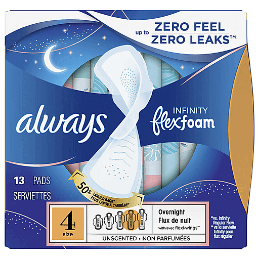 Always Overnight Unscented Size 4 Pads 13 ea